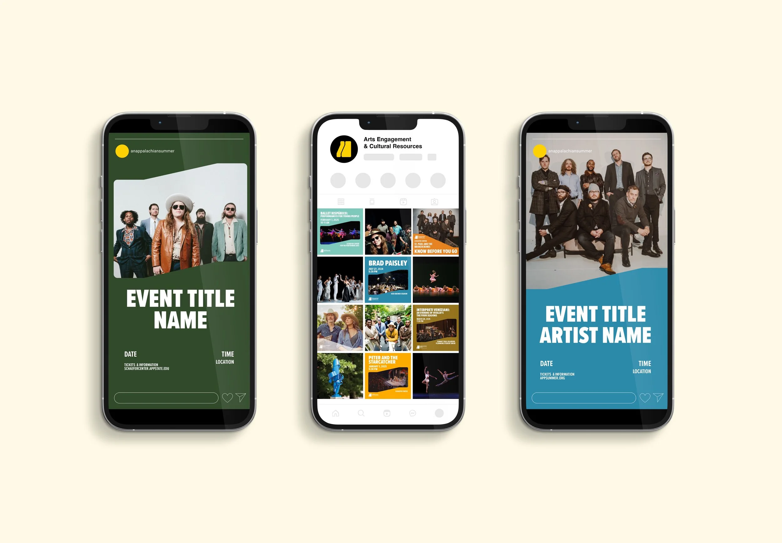 Photos featured in template mockups were provided by the Appalachian State Office of Arts Engagement & Cultural Resources and are used for preview and presentation purposes only.