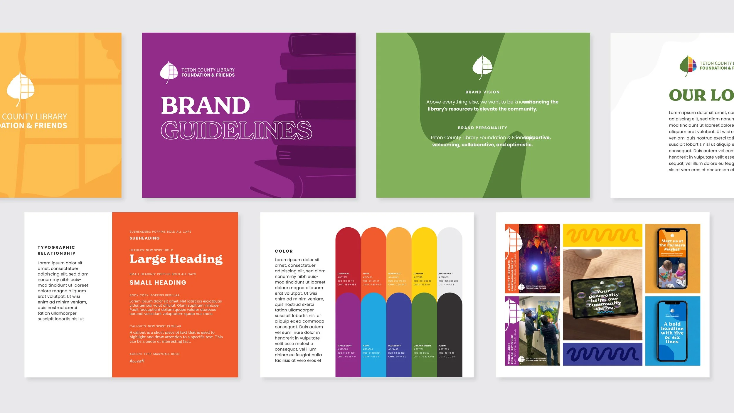 When Teton County Library Foundation and Teton County Library Friends merged, I created the rebrand for the new organization. This included developing the creative direction, designing an updated logo, creating brand guidelines, and crafting social media templates.